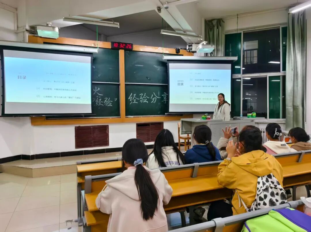 在交流互动环节,两位学姐结合自身特色从不同角度回答同学们提出的问题,让台下学子感受到“优秀并非偶然,而是可规划、可努力的结果”,有效激发了大家的学习动力。